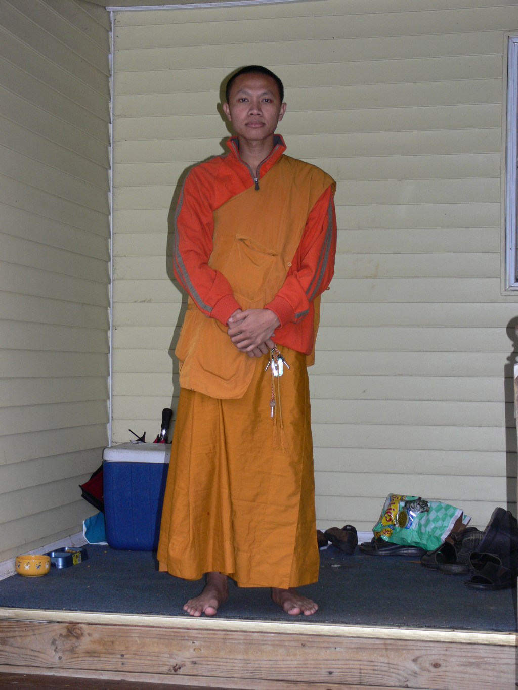 You are surprised when the young man approaches you, his saffron robes a bit faded, his sandals more worn flip-flops, his smiling face almost too happy for a cool morning on the rough pavement of a street in Vienna, cafes pressing the curb. He isn’t begging, not like at home, at least, but he does bow…
