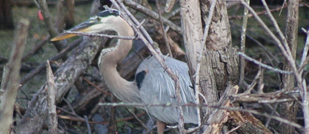 There is always that moment when I stand stock-still, afraid to move, the poised camera a lead weight on my hands, arms emaciated hammocks dangling from shoulders inviting something that will not come into focus. The Great Blue heron, who is the sole focus of my attention, stares at me, or through or perhaps past…