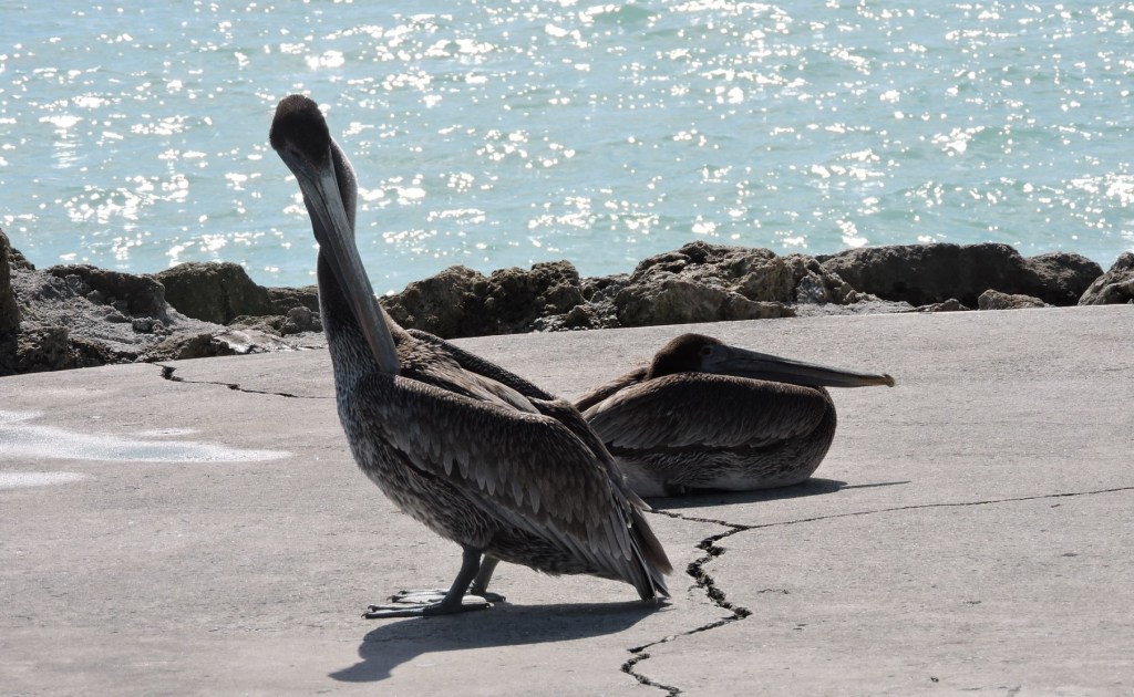 The pelican has remarkable patience. It doesn’t hurt that he knows how this will play out. It’s pretty much the same, day after day. That’s life on the jetty. Once the crusty old man is done fishing, once he packs up his cart to leave, he will dump his remaining bait fish on the jetty.…