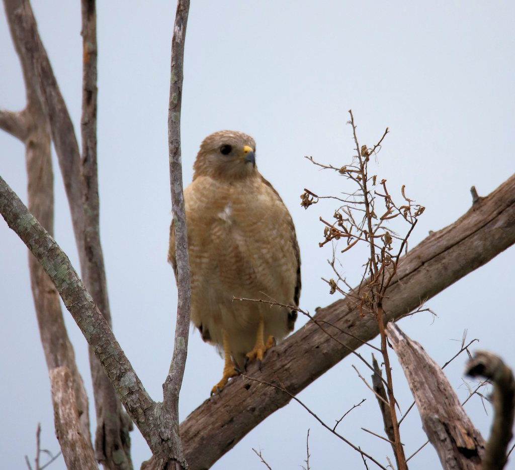 Looking out the windowI quickly realize that the windowneeds cleaning, and thenthat the red-shouldered hawkin the nearby tree is carefullystaring back at me. I want to know whatthe hawk is thinking, perhapsthat I am possible prey, ormore likely wondering whyI am so foolish as to livein a strangely large box. The hawk, of course, iswondering…