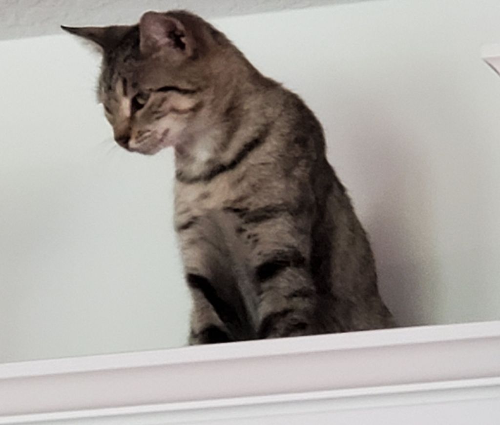 The cat likes nothing betterthan to sit atop the kitchen cabinetswithin easy reach of the ceiling. We thought at first it wasa place of safety, less to fearin a new home, new people. We know better now, for shegoes to high places, cabinetsbookcases, when the meditation bell rings., She’ll climb down afterthe ending bell rings,…